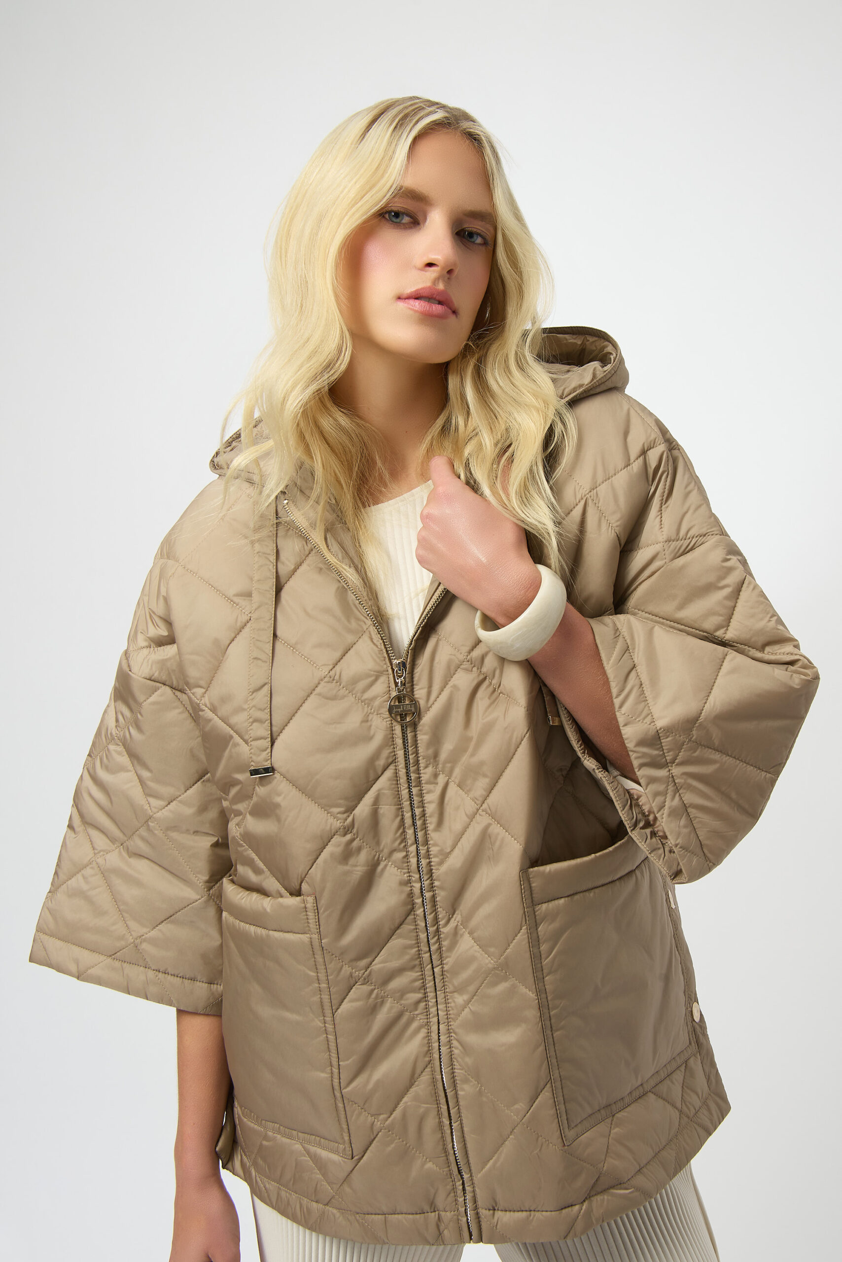 Woven Diamond Quilt Hooded Jacket